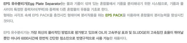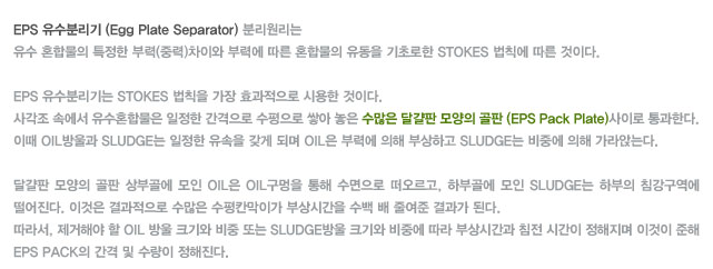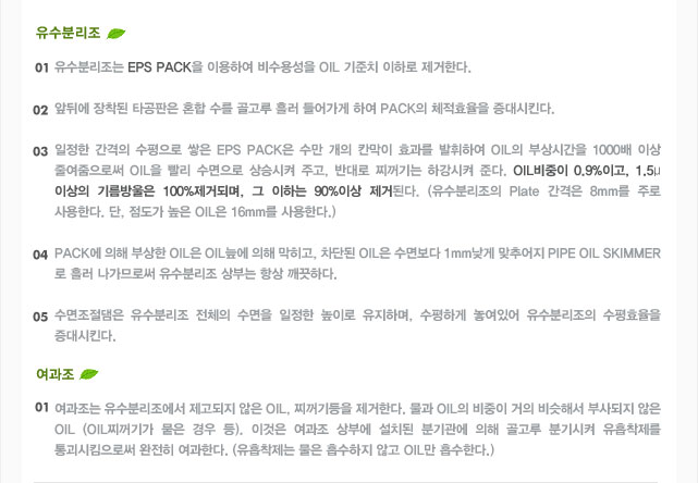 유.수 혼합물의 OIL함량 90%를 20PPM 이하로 분리 |