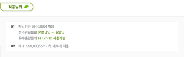 유.수 혼합물의 OIL함량 90%를 3PPM 이하로 분리 |