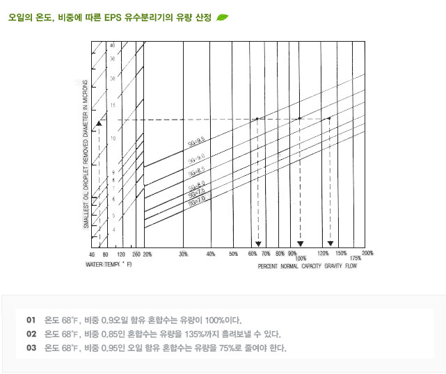 ※ 기름방울 크기 15µ일 경우 비중에 0.85는 7분 9초에, 비중에 0.9는 10분 43초에 8m/m 떠오른다.