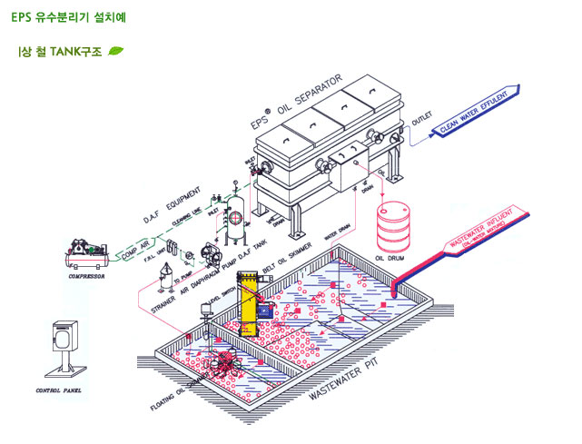 유수분리후 방류하고자 하는곳 / 압연공장의 냉각, 주조폐수, 지하철 / 송유관, 정유회사 / 프레스공장 폐수 / 발전소, 석유화학공장 / 자동차 세척공장 |