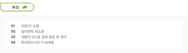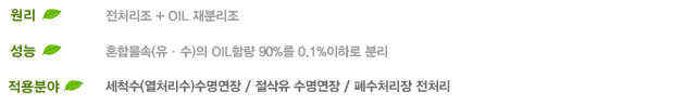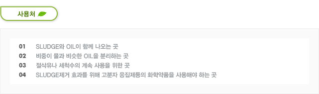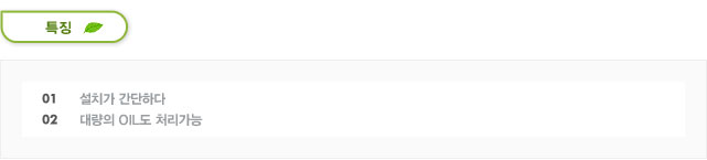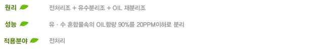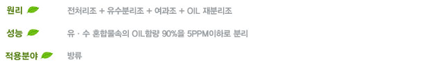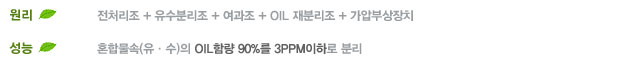 ※ 가벼운 OIL 폐수시 80% (경유, 윤활유 등)